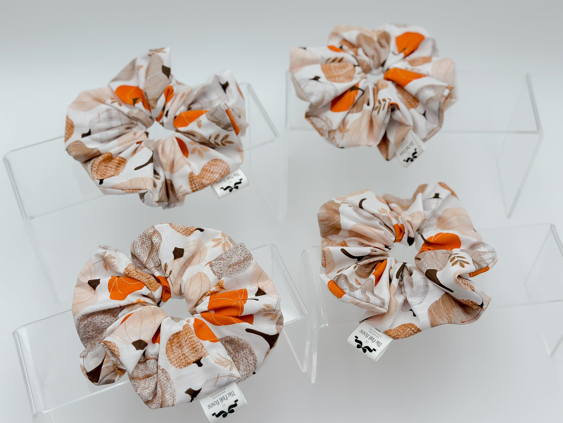 - Beige and orange pumpkins fabric Hair Scrunchie