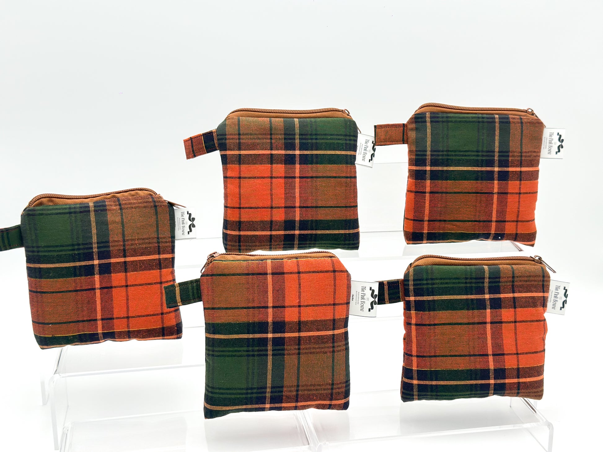 - Green and orange plaid keychain wallet w/ floral and squirrel interior