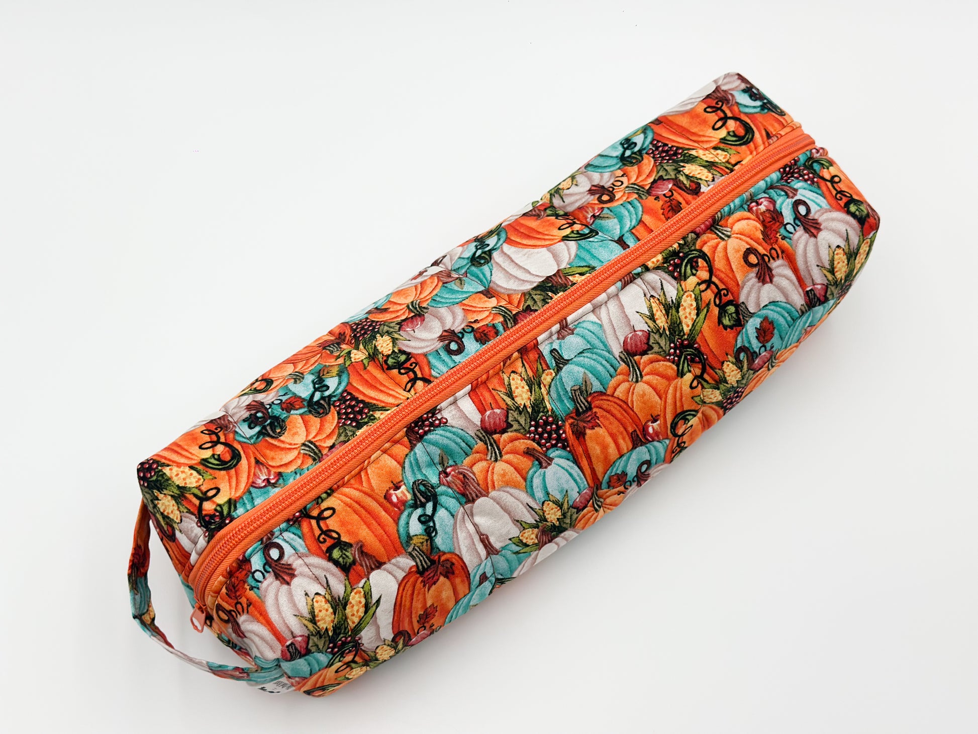 - XL Colorful pumpkins fabric Makeup Bag w/ floral and squirrel interior