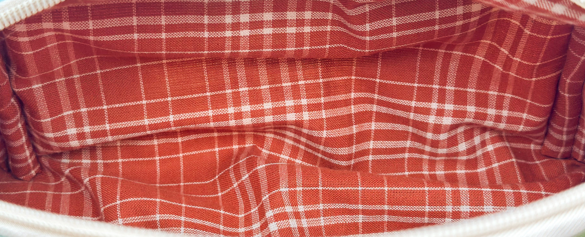 - L Quilt design fabric Makeup Bag w/ orange plaid interior